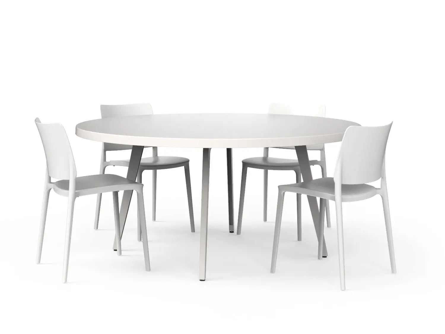 Unsere Doves Möbel machen draußen und drinnen eine gute Figur. Dazu gehören zwei runde und ein ovaler Tisch in der Farbe RAL 9016 (verkehrsweiß). Die Tischplatten sind aus hochwertigem faserverstärktem Fiberglas und die Beine aus pulverbeschichtetem Stahl gefertigt – frostbeständig, leicht und trotzdem robust. Die passenden Stühle der Doves-Serie werden aus Polyester hergestellt und sind daher leicht, wetterfest und zudem noch stapelbar. Die Gartentische sind in drei verschiedenen Größen erhältlich – bitte treffen Sie Ihre Auswahl.