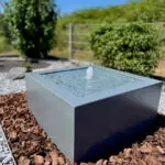 Ein sehr moderner und schlichter Brunnen, der von der Form her stark an unseren Zink-Kubus-Tisch erinnert.
