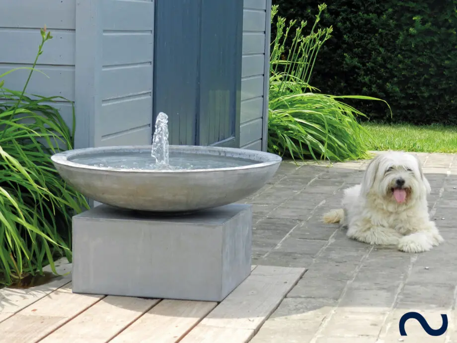 Schöner, klassischer Brunnen aus Zink, der eine Wasserschale (Schalendurchmesser ca. 60 cm) mit einer Standsäule kombiniert. Ob in Blumenbeeten, auf gepflasterten Plätzen oder auf der Terrasse – der Gartenbrunnen ist frei stellbar und fügt sich sehr gut in das umliegende Ambiente ein. Das Wasserobjekt wird als Komplettbrunnen mit Umwälzpumpe und Armaturen geliefert. Dieser Springbrunnen ist in zwei Ausführungen lieferbar – hoch und niedrig. Bei dieser Variante handelt es sich um den „Zinkbrunnen Toulouse niedrig“ und die Maße betragen ca. 35 cm hoch, Sockel 20 x 40 x 40 cm.