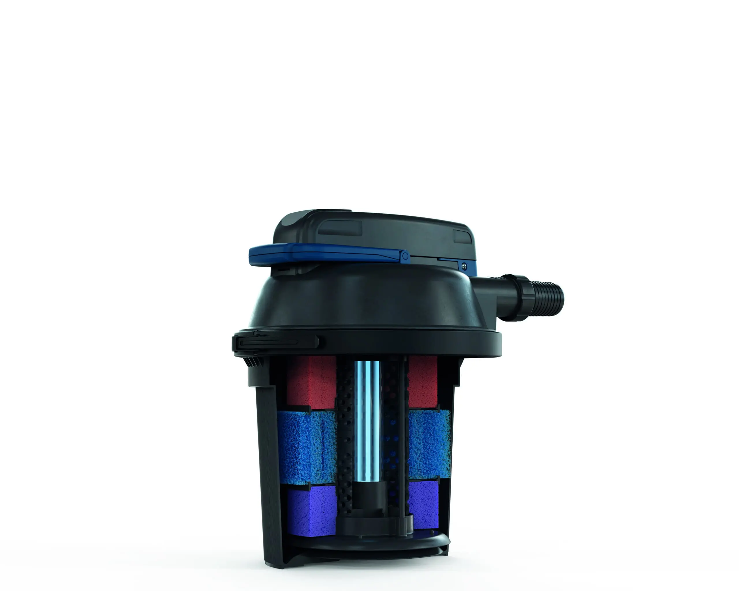 - Anzahl Filterschwämme: 1x Blau, 1x Rot, 1x Violett
